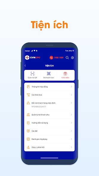 application supports electricity users in the Central region from Quang Binh to Khanh